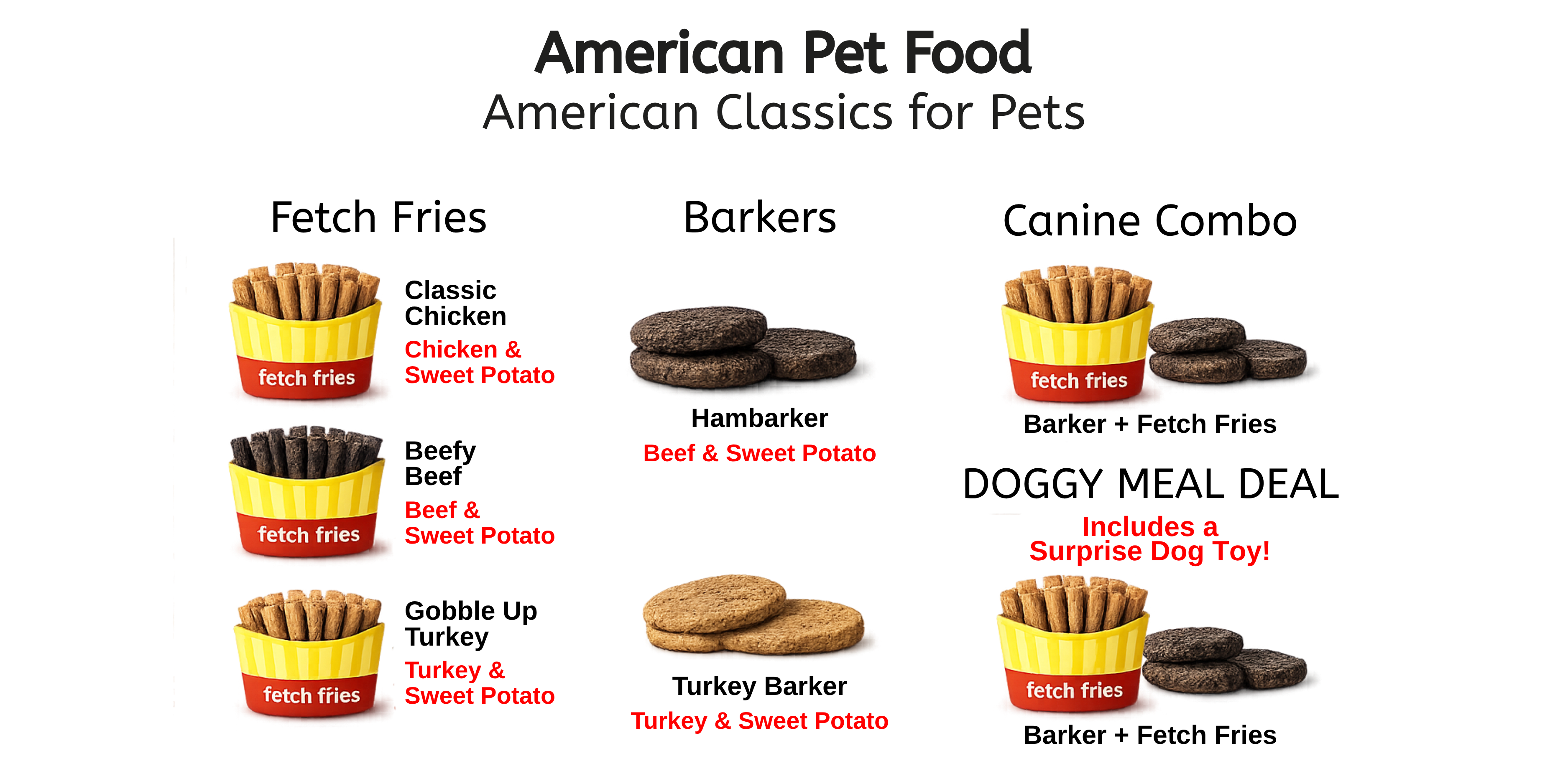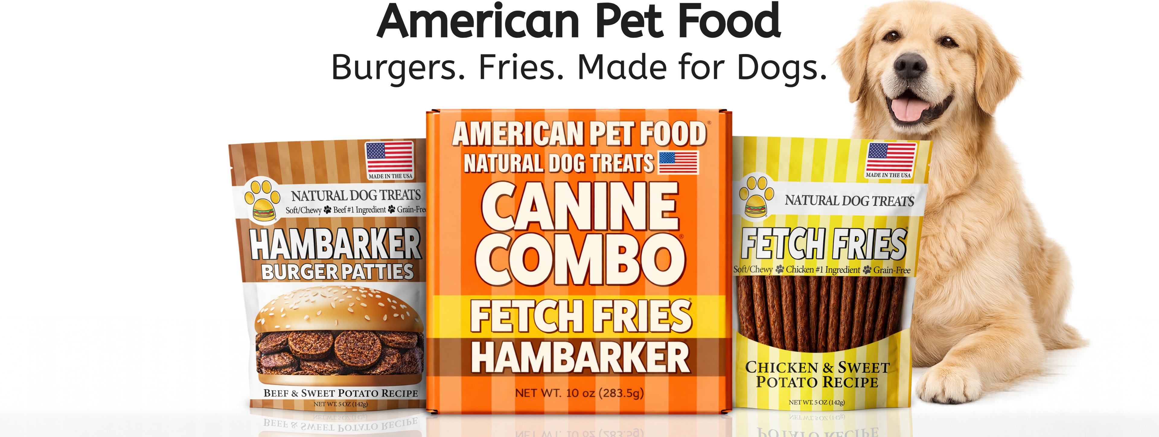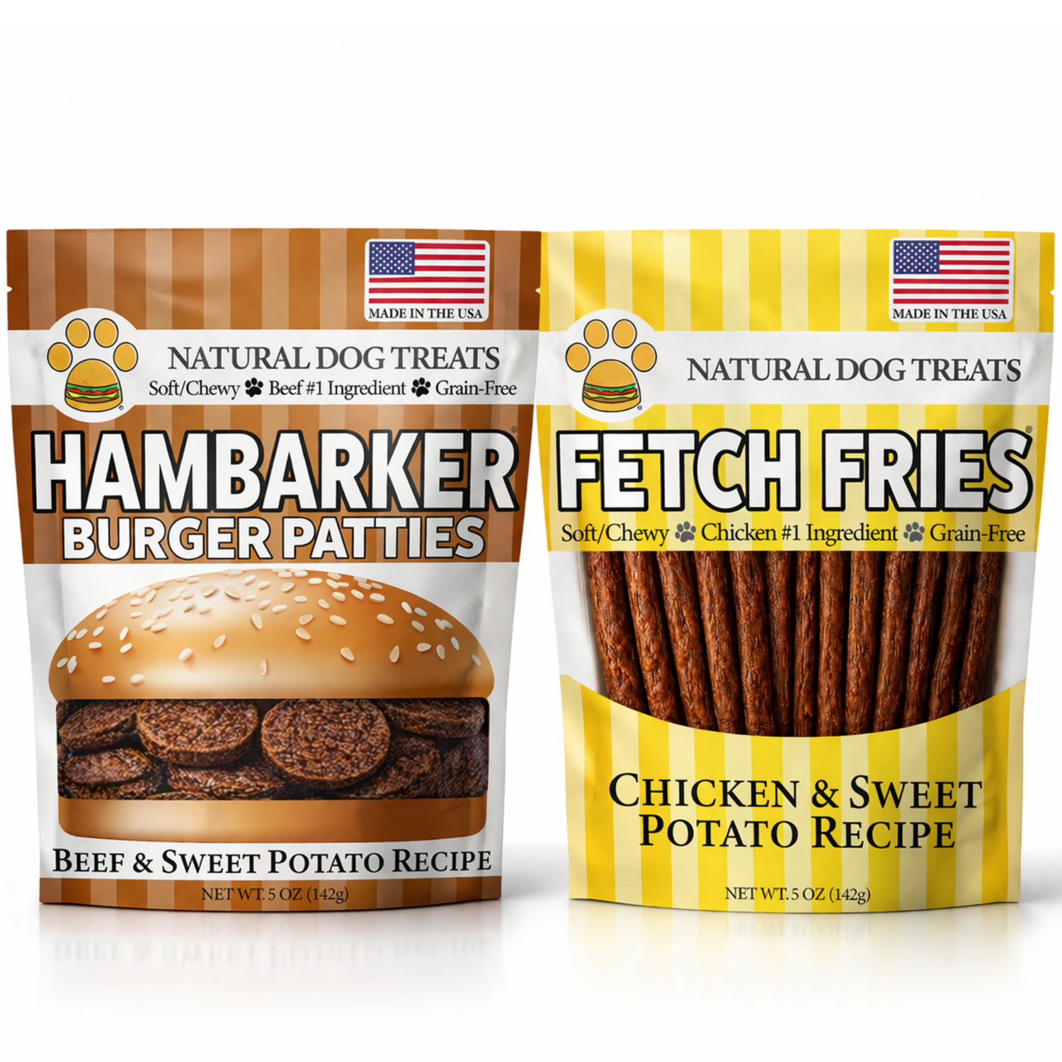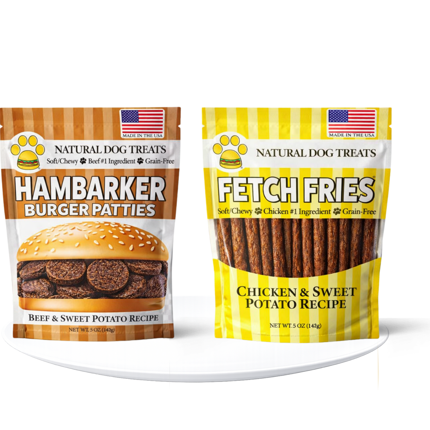 Fetch Fries and Hambarkers turn burgers and fries into craveable dog treats, made in the USA with simple, natural, trusted ingredients.