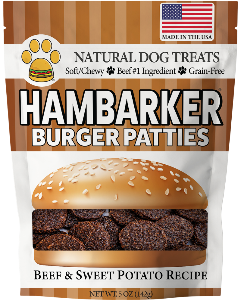 American classic burgers for dogs made in the USA with beef and sweet potato.